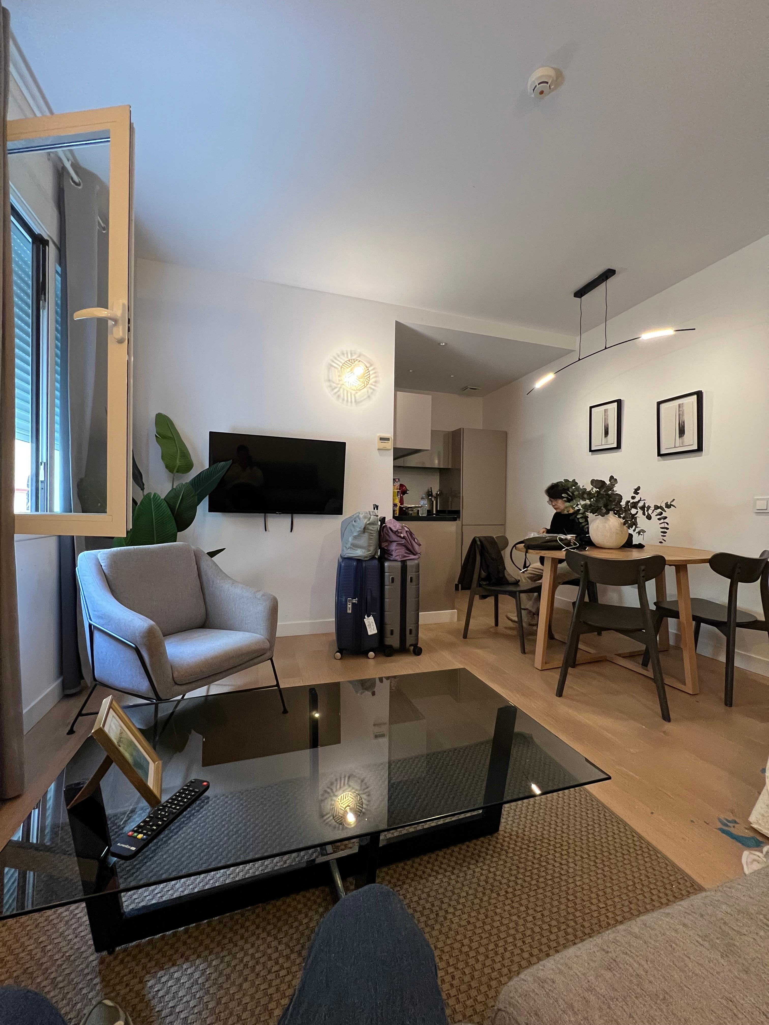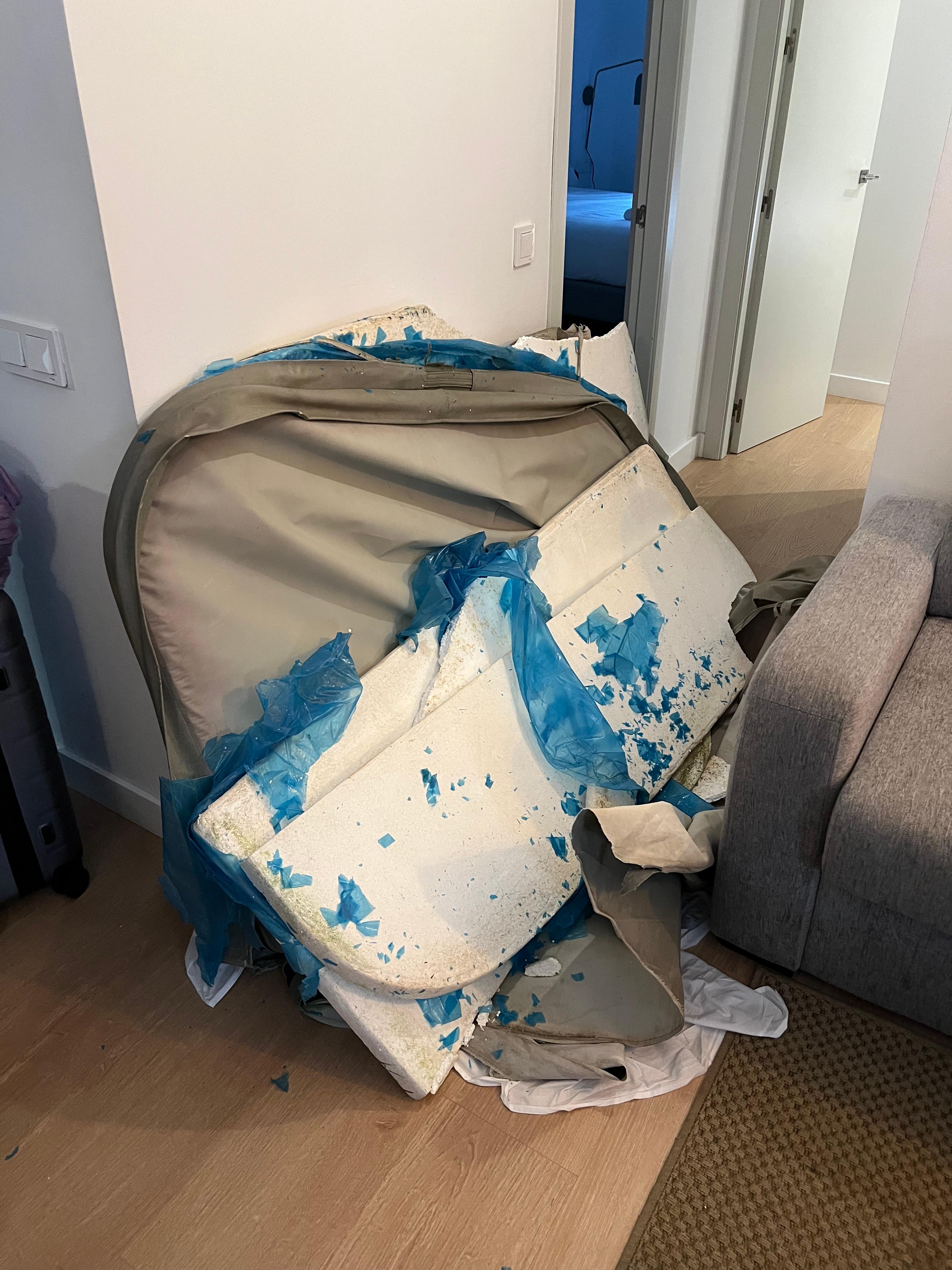 체크인하러 문을 열었는데 방 한가운데 이런게 놓여져 있는것이 아닌가. 건물 내 인테리어 폐기물 같았는데, 잠시 띵...관리자에게 문자를 하자 지금 당장 치우러 갈 수가 없고 한 3시간 정도 뒤에 올 수 있단다. 그동안 여기저기 돌아다니면서 여독이 많이 쌓여서 바로 나가기도 애매했던지라 일단 거실에 앉아서 대기 하기로 했다.